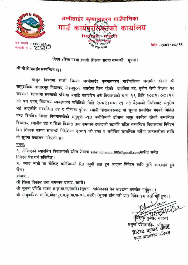 रिक्त पदमा स्थायी शिक्षक सरुवा सम्बन्धी सूचनाहरु ।