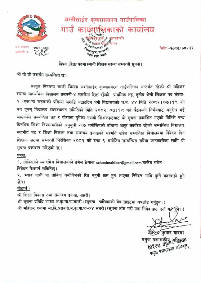 रिक्त पदमा स्थायी शिक्षक सरुवा सम्बन्धी सूचनाहरु ।