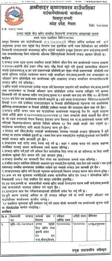 » उन्नत गहुँको वीउ खरिद सम्बन्धि सिलबन्दी दरभाउपत्र आवहानको सूचना ।