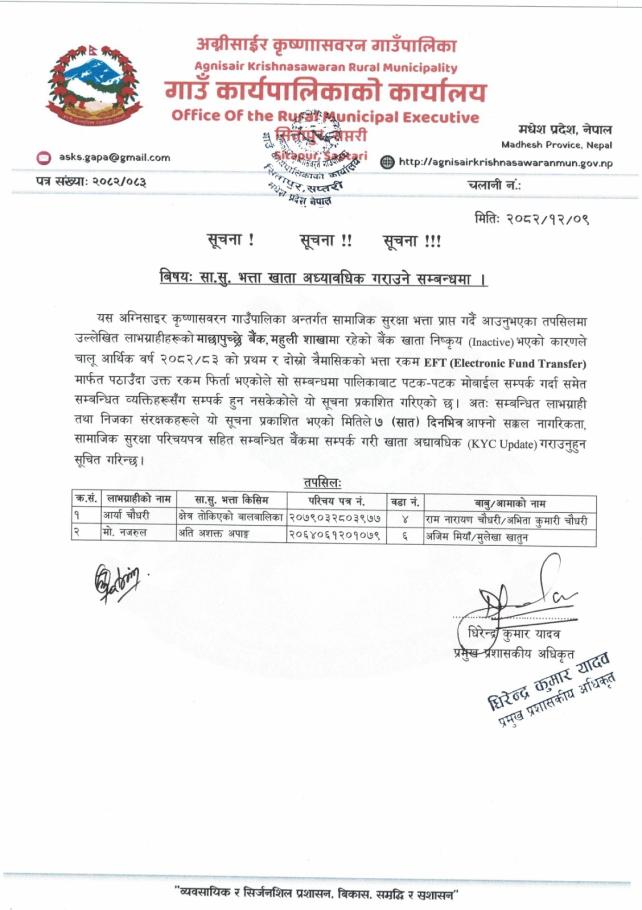 सा.सु.भत्ता खाता अध्यावधिक गराउने सम्बन्धी सूचना ।