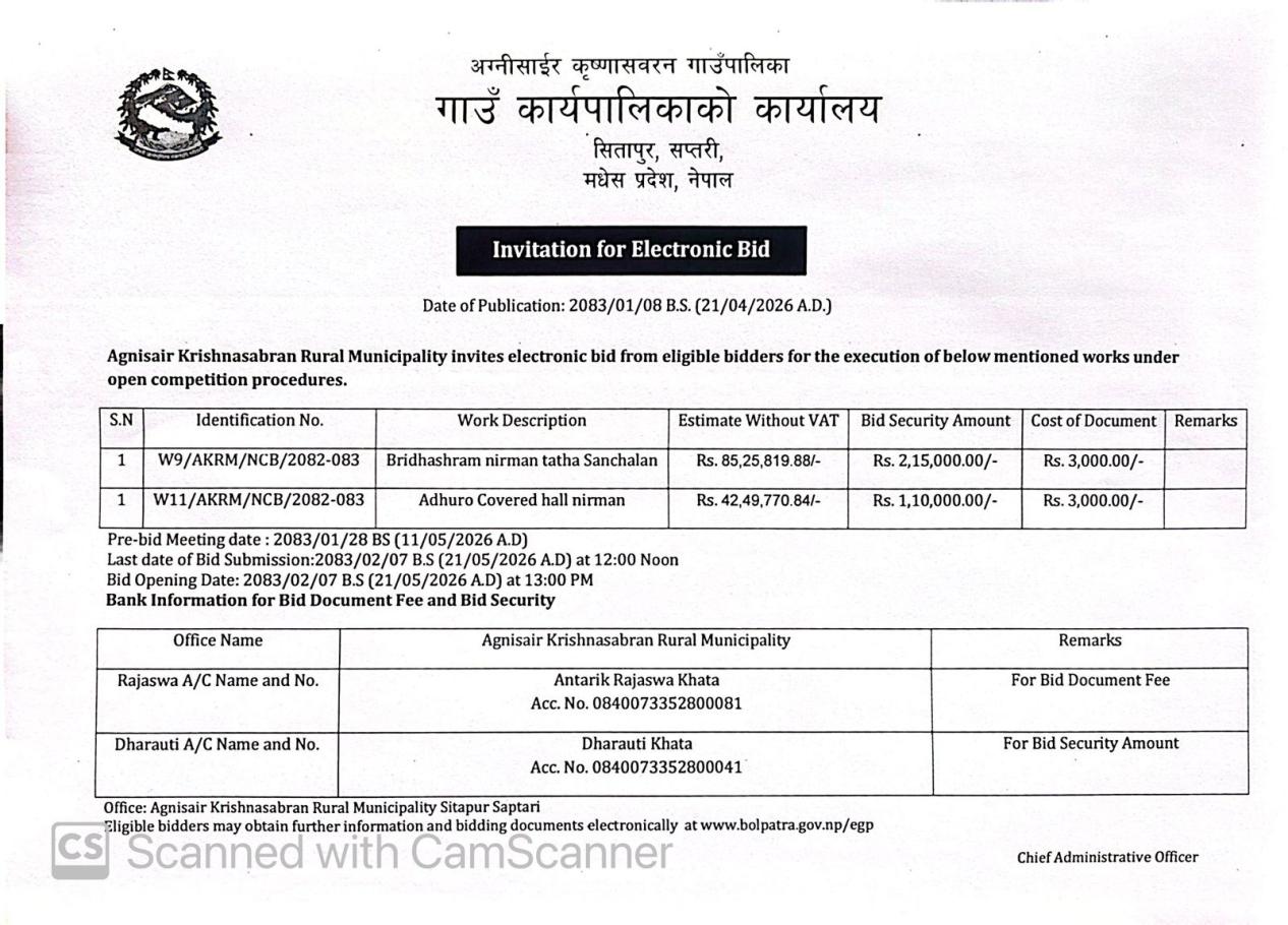 Invitation for Electronic Bid र बोलपत्र स्वीकृत गर्ने आशयको सूचना