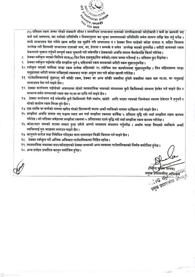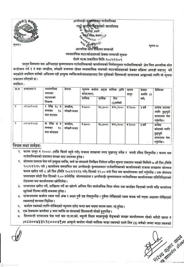 व्यवसायिक सटर/कोठाहरुको ठेक्का सम्बन्धी सूचना दोस्रो पटक प्रकाशित मिति २०८१/१२/०९