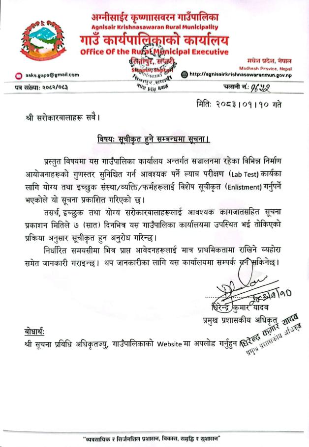 सूचीकृत हुने सम्बन्धमा सूचना
